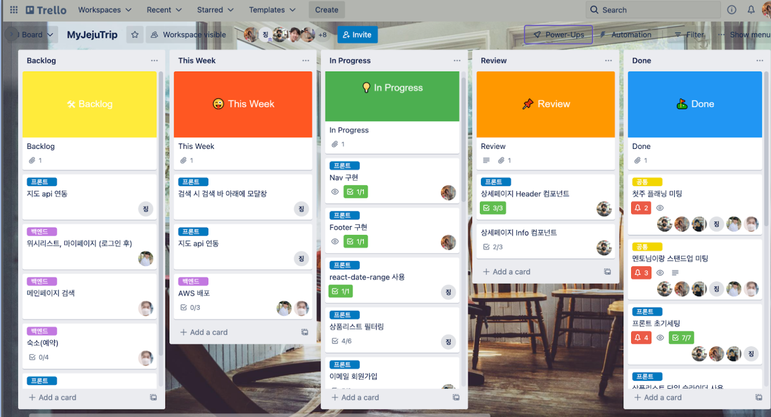 제주도 한 달 살기를 목표로 한 숙박 예약 웹사이트를 구축하고자 했습니다. 2주간 프론트엔드 4명, 백엔드 2명이 한 팀이 되어 2번의 스프린트 기간을 잡고 프로젝트를 진행했습니다.